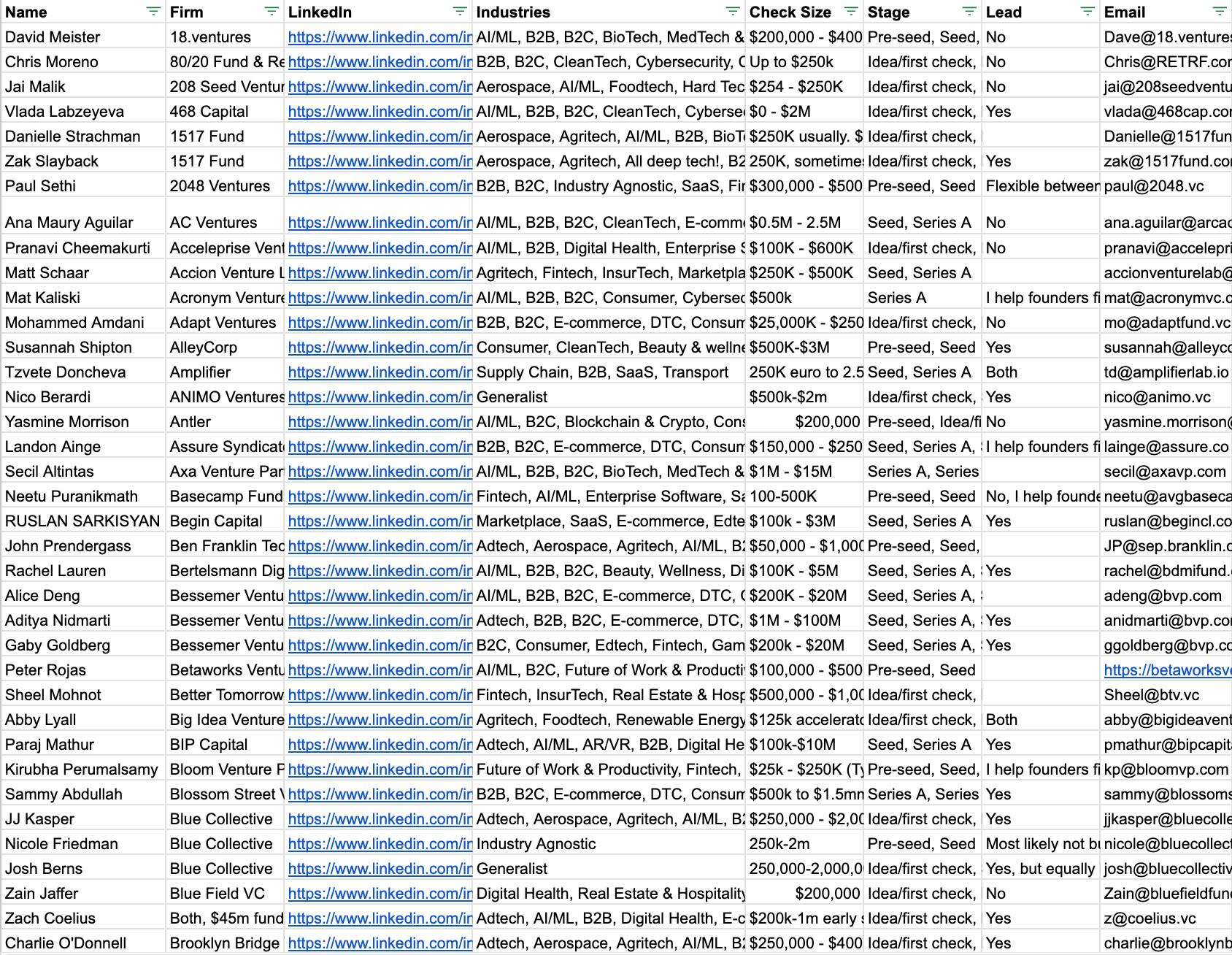 Filter by sector, investment stage, check size, and geographic focus to find your perfect match.